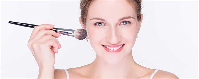 2、用散粉刷混合四色上妆:将散粉倒在手心,用散粉刷沾取混合,轻刷于面部定妆,眼部、T区等易出油的部位,重点按压定妆即可。