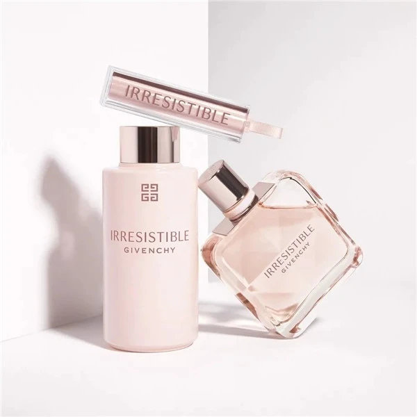 “Irresistible Givenchy据称是一款花香木质和果味的香水,它在两种对立面之间形成对比:一种芬芳的玫瑰香调和一种闪耀的金色木香。”