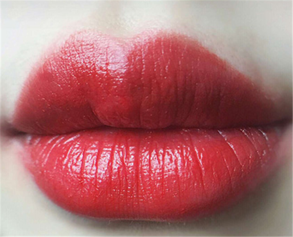 上唇后有点显唇纹,但是颜色还是很显白的,不管是薄涂、厚涂或是画咬唇都很好看。但是厚涂时有一种砖红色的错觉,是很适合秋冬的涂法。