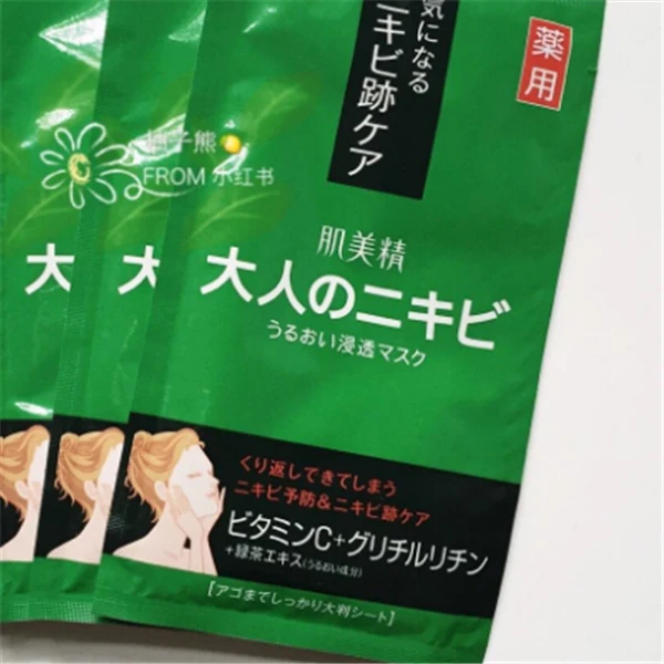 肌美精绿茶祛痘面膜,最近因为大姨妈的缘故,脸上出了好多红痘痘,一开始用了狮王祛痘膏竟然越用越厉害[哭]然后就转战面膜了,其实我一开始看中了前男友面膜,可是真的好贵好贵[害羞]于是找朋友从日本带的这款平价的面膜,看好多人也用过,评论很好我才入手的,已经用了第二片了,据说连敷三天效果很棒,正在期待今晚。