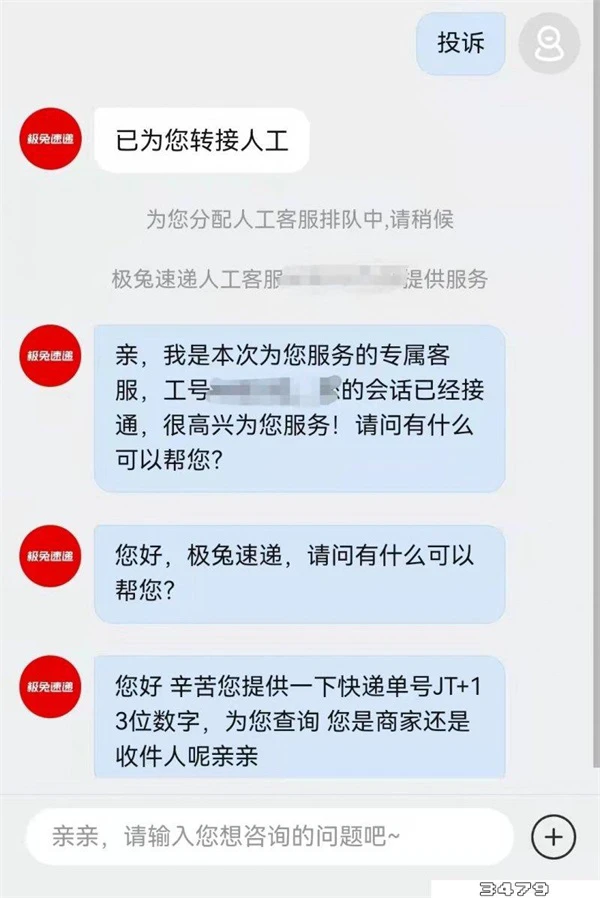 进入客服聊天页面后,在对话框中发送【投诉】,便会自动转接人工客服,注意输入你想要投诉的订单,并向客服说明你的投诉详情即可;