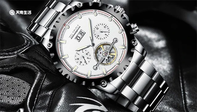 4、戴手表时,手上的汗水对表壳有腐蚀性,全钢表壳由于是镍铬合金,抗腐蚀性能好些,半钢表壳是铜的,长期与汗水接触,容易腐蚀,应经常用软布抹去汗水或垫上塑料表托,以防止其被汗水侵蚀。