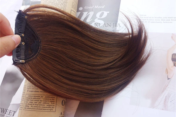 做假发片的设备叫三联机,就是类似缝纫机的东西,三个机头同时工作,边缝边施胶,用线缝住用胶粘住。出来的帘子象线一样长,根据客户需要截断。假发片的成本几乎是由材料钱决定的,人发价格主要区别于头发长短,混发的比例决定价格。所有工厂的原材料成本都是差不多的,假发片制造工艺千篇一律,国内因为没有规模的销售商,机器产量又很大,假发厂的销售暂时精力没有放在国内,所以国内业务开展的不是很理想。