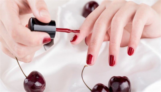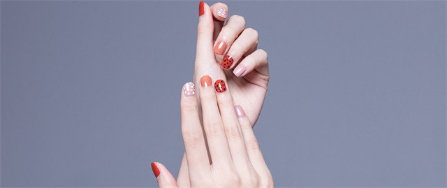 第五步:用甲油胶涂抹第一层颜色,从指甲后缘向指尖涂刷一层薄薄的甲油胶。注意在刷后缘时,要把刷头轻轻按在甲面上,慢慢向指缘推,再向后拉,然后刷两边即可,涂刷均匀后照灯固化即可。