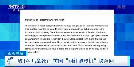 美国派乐腾公司负责人在社交媒体上表示,愿意召回公司全部两个型号的跑步机,并向消费者道歉。据了解,这两款跑步机是2018年9月上市的“Tread+”跑步机,目前已售出125000千台,售价为4295美元,约合人民币28000千元。此外,还有另外一个型号的约6500台售价较低的跑步机。目前购买了上述产品的消费者可以要求商家全额退款。此前美国消费产品安全委员会曾表示这种机器有造成儿童擦伤、骨折和死亡的严重风险。目前,已经有超过70起相关事故发生。