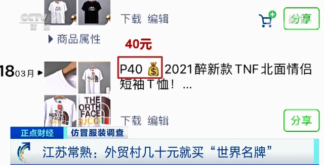 保护知识产权是社会发展的共识,而生产销售假冒伪劣产品会冲击正常的生产秩序,侵犯他人的知识产权,从而对整个经济造成极为负面的影响。按照我国的法律规定,生产销售假冒伪劣产品都属于违法行为。然而此前有媒体报道,江苏常熟外贸村仿制销售大量名牌服饰,包括知名运动品牌、潮牌以及一些奢侈品牌。在当前强调知识产权保护的背景下,以及多次严打之后,这样的现象还存在吗?央视财经记者在三月中旬实地探访了常熟桑园街。