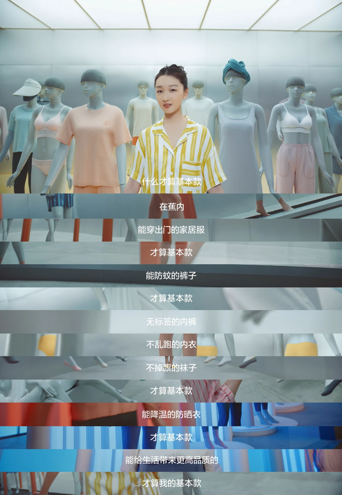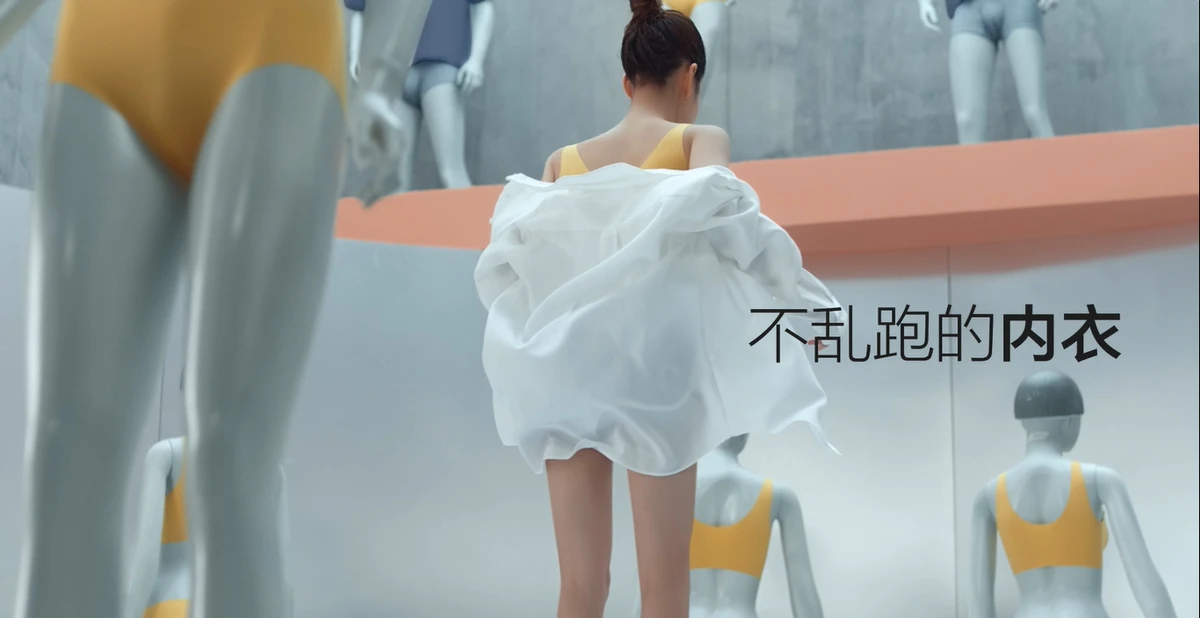 尽管科技创新是蕉内以产品提升用户体感的内核,但“技术控”蕉内却没有在这支广告片中过多展示它独特的体感科技元素,周冬雨更像是一位“产品体验官”,向大众分享自己的感受。影片整体格调较“轻”,尽可能地摒弃多余修饰,这样的处理反而能让大众更聚焦产品本身,惊艳于蕉内竟然能针对标签扎人、袜子掉跟、内衣跑位等痛点做出的改变。