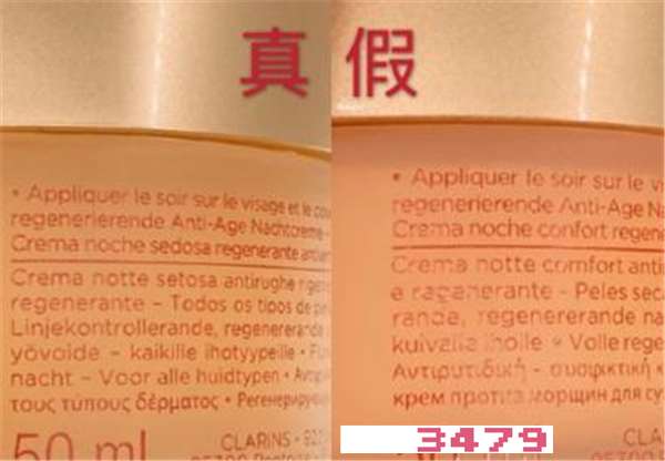 2、看娇韵诗面霜的背面,正品字体是印刷清晰的,而假货的话印刷比较模糊,还有毛边黏连。
