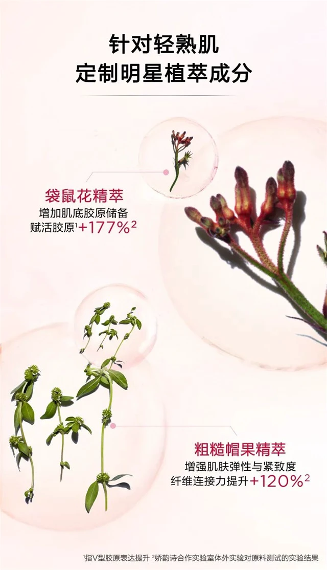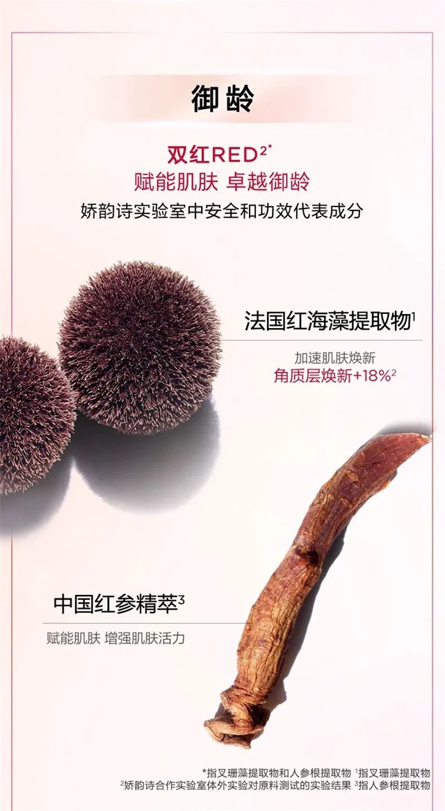 本次全新升级的法国娇韵诗【分龄精华水】,全系列添加【双红双链】复合物[1],有效提升抗老保湿功效,协同每支精华水特别定制的分龄明星植萃成分,卓效提升【肌肤能量】,帮助肌肤焕活年轻深度保湿,为不同肌龄打造勇敢、自励、真实的年轻力!