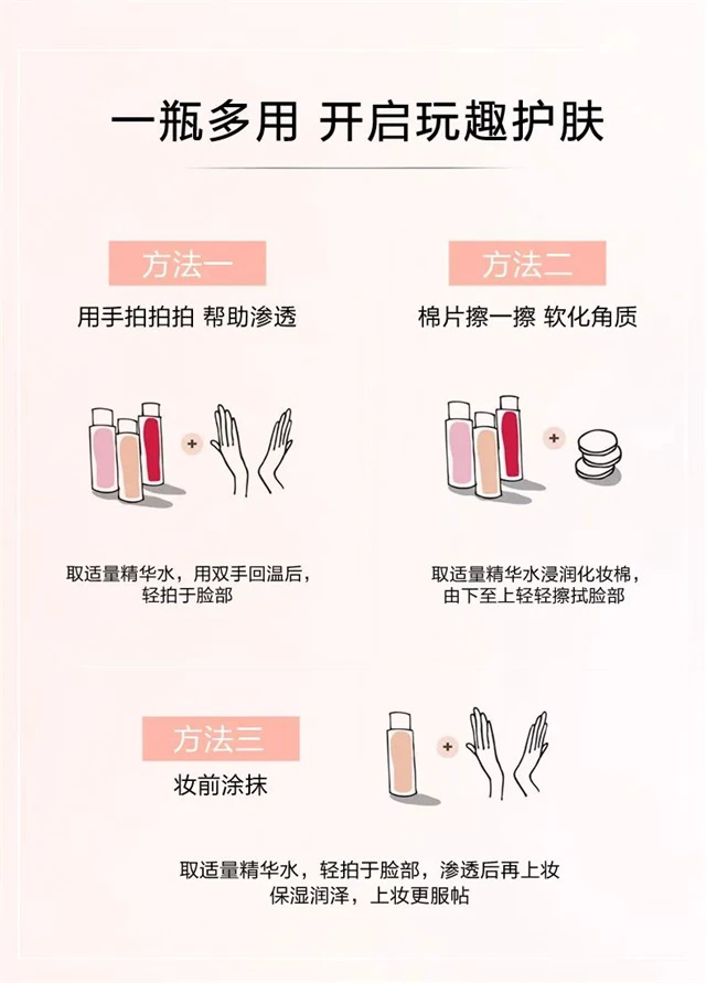 作为适合年轻肌的第一瓶精华水,添加起绒草精萃,如GPS般精准定位受损肌肤能量,有效抗氧化,改善肌肤瑕疵。
