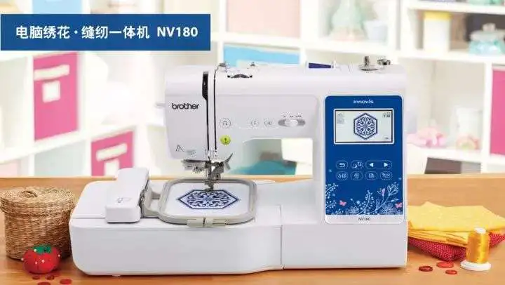 兄弟工业的这款名为NV180的系列产品,主要针对家用手工DIY。其内置了181种缝纫针迹、4种文字针迹,80种绣花花样、140种外框花样,以及10种绣花字体。可自由组合或是自定义针迹。拆下绣花单元后,则为家用缝纫机,缝纫速度850针/分钟。家用缝纫机的缝纫速度一般在400针-1200针/分钟。