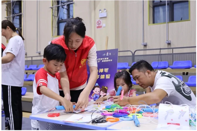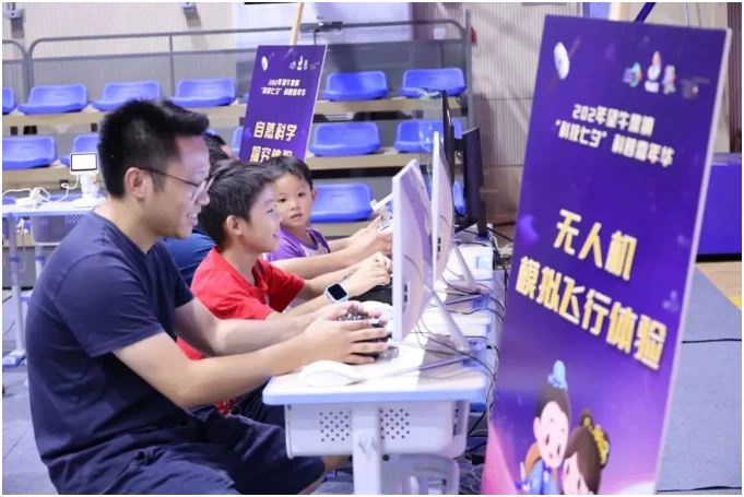 无人机模拟飞行体验、3D神笔创作体验、七夕搭搭乐等项目展示科技加持下的七夕故事,市民群众在互动中体验科学成果在生活、工业、商业的应用。