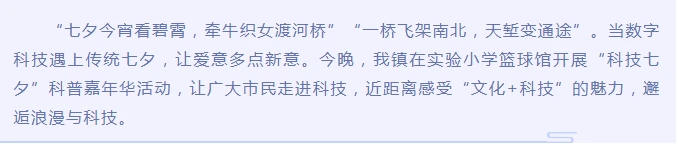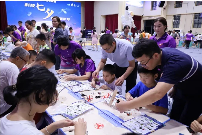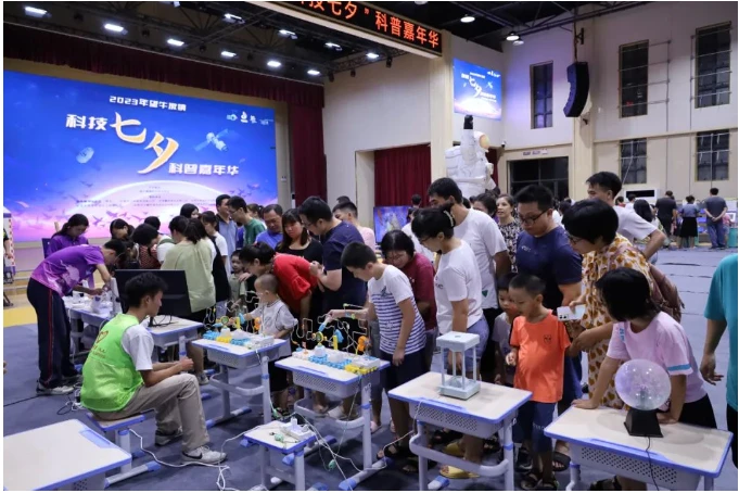 “科技七夕”科普嘉年华活动共设置流动科普站互动体验、自然科学探究体验、无人机模拟飞行体验、3D神笔创作体验、七夕搭搭乐、七夕沙画艺术体验等活动主题区域,超过30项科普展示及体验项目。