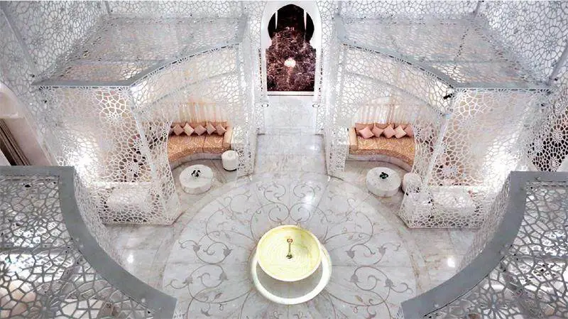 酒店内的水疗中心荣获多项殊荣,在全球范围内享有卓越声誉。其占地2500平方米,设计独树一帜,融合了宏伟的建筑美学与静谧的庭院风光,巧妙地将摩洛哥传统元素与现代科技相结合,为宾客营造出一种备受呵护的氛围,使人在此得以彻底放松,有效缓解身心压力。酒店特别为宾客安排了专业水疗顾问进行初步咨询,依据每位客人的个性化需求,量身定制理疗方案,旨在助力他们达成健康生活的目标。此外,水疗专家还会在营养膳食、运动健身、压力管理以及全面健康维护等方面,为宾客提供专业指导。在此水疗护理师将引领宾客踏上一段舒缓身心的水疗之旅,精心设计的护理项目能够唤醒感官与肌肤的敏锐感知。其中,极具异域特色的土耳其浴室更是水疗中心的一大亮点。此外,这里还配备了美容沙龙、健身中心,以及一个拥有玻璃穹顶、光线充足的室内游泳池,为宾客提供全方位的休闲与健身体验。