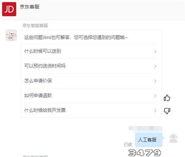 4、进入到与京东客服对话页面,输入“人工客服”;