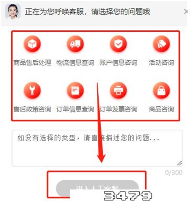 6、结合自身诉求选择问题,并点击【进入人工客服】选项即可。