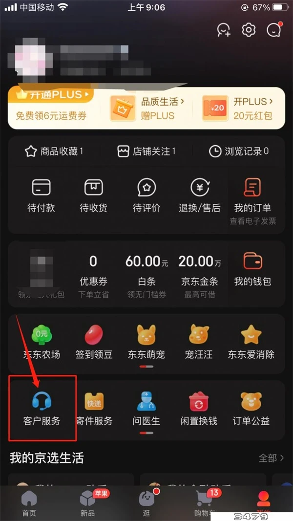 3、在【我的】页面找到上方【客户服务】功能,点击进入;