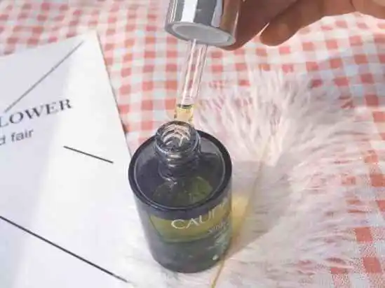棕色的玻璃瓶设计,搭配滴管,可以控制用量,又卫生。滴出的精华流动性很强,看起来是油,其实有点像水,能流下来的那种。皮肤吸收很快,蛮清爽,不粘腻。