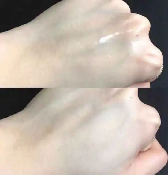 这款精华的质地很清爽,是淡淡的黄色。擦在皮肤很快就能被吸收,一点都不油,更不会闷,用后非常保湿水润。