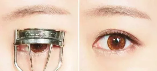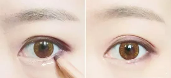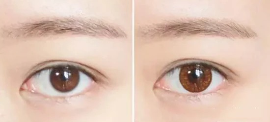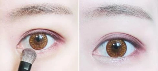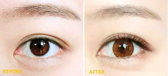 第一步:在画眼影之前大家可以先佩戴一副棕色系的美瞳,这样可以使眼睛放大一倍哦,让整个妆容效果更好的,而且和所有色系的眼影都十分搭配哦。