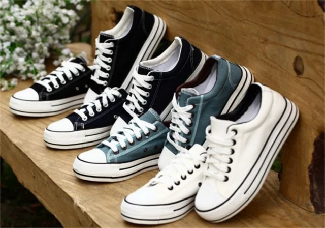 帆布鞋是比较经典的款式,卡其色裤子加帆布鞋的搭配是最简单休闲的搭配,这种搭配不仅凸显出一种清新活力的气息还十分舒适。