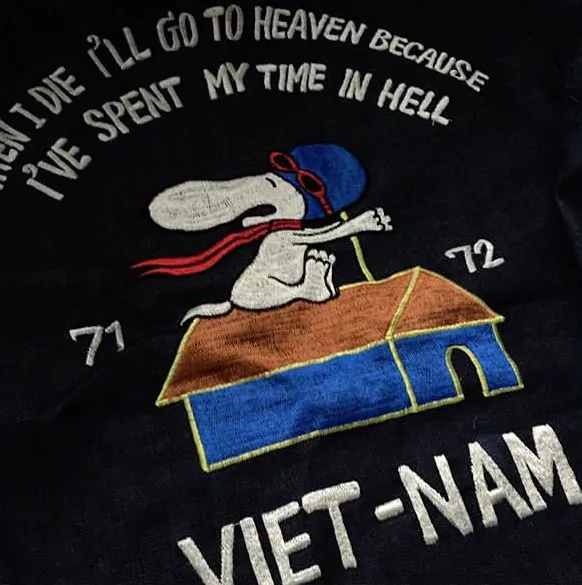 正是如此,史努比成为了英国潮牌TSPTR首席设计师Russ Gater设计的王牌夹克形象,代表着“反对战争”的态度。“漫画主人公Charlie Brown和史努比被印在许多非官方徽章和Zippo打火机上。被运送至世界各地打仗的士兵们用这样的方式表达自己强烈的不满,”Gater解释道,“通过史努比形象所表达出的负面态度就是我设计时装的原型和出发点。”他希望,除了表面价值,西方时装品牌也可以学习《花生》所代表的态度。