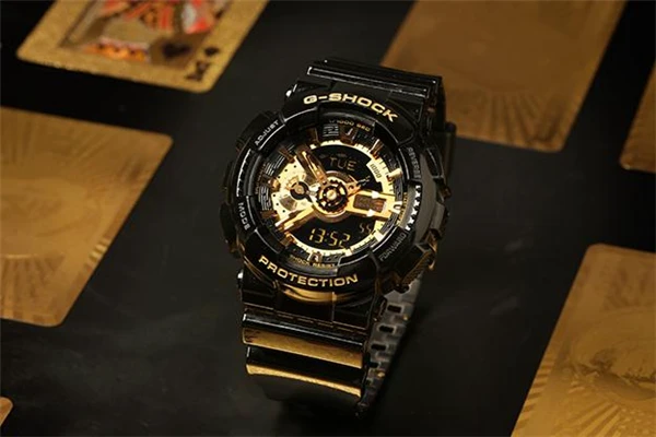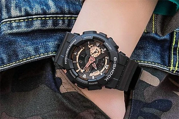 卡西欧ga110系列的樱花粉颜色非常粉嫩少女心,可以搭配日系风或是复古风,凸显青春可爱。而黑白拼色则很适合与运动休闲风搭配,更显年轻活力,经典暗黑金色与正装或是小礼服是绝配,完全展现出成熟稳重气质,让人魅力十足。