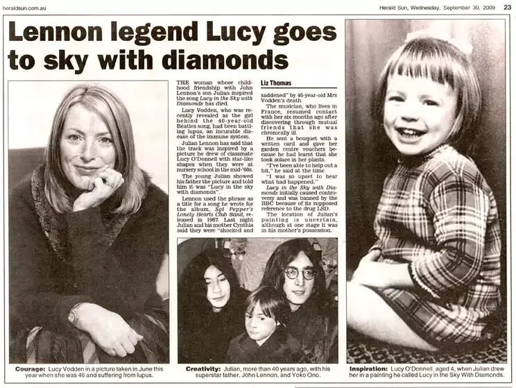最动人的故事来自披头士的一首歌。那时,约翰列侬的儿子朱利安列侬还是个幼儿园里的小男孩,经常和他嬉戏打闹的小女孩名叫露西。