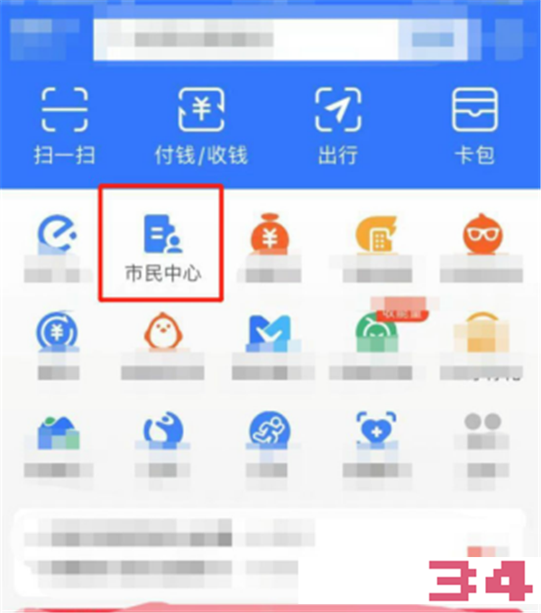 1、手机下载支付宝软件,找到“市民中心”,然后找到“更多服务”。