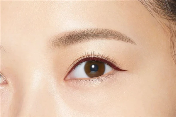 Step 1:利用KISSME花漾美姬超!持久极细抗晕眼线液笔#波尔多红将眼尾上提画出微笑弯弯的眼神,眼尾朝夫妻宫(太阳穴位)拉出自然弧度,再利用下眼线尾部晕染,红棕色眼线多了温柔神韵,营造甜美笑眼。