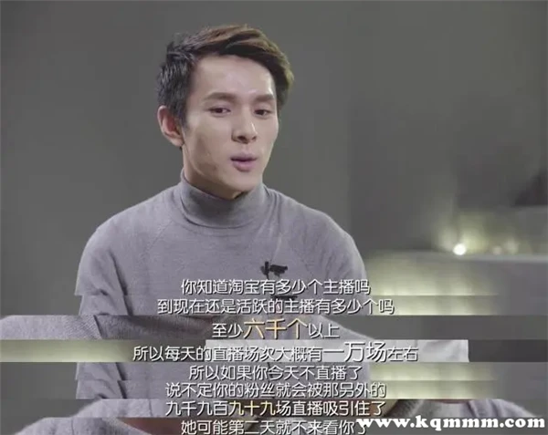 除了他在直播背后的努力,他能这么红,这跟他的心态也是很有关系的。大家是不是会觉得他都已经这么红了,是不是可以给自己放松一下,休息休息呢?他家看他是怎么回答的,“你知道淘宝有多少个主播吗?到现在还是活跃的主播有多少个吗?至少六千个以上。所以每天的直播场次大概有一万场左右。所以如果你今天不直播了,九千九百九十九场直播吸引住了,她第二天就不来看你了”。