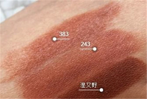 说说这几个平价色,闪光灯下的他们是这样的,但是,事实上呢,什么土橘色,只有土没有橘,可以看最后一张试色,我真的不想再说什么了,真是上嘴颜色,就是手上的颜色了,真的是!土色!!!383还可以,其他两个我真是,不知道怎么形容,湿又野534b只能轻轻抿一点,234也只能薄擦一层,反正就是土色,枫叶色应该是阿玛尼405,或者Nars秋叶那样啊!这个完全是枯叶色,和网红试色不一样啊不一样