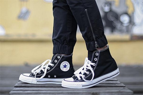 匡威帆布鞋可以配牛仔裤,短裤,阔腿裤等。匡威黑色经典款,搭配上简单的T恤和牛仔裤,就足够让你在人群中出挑。最新科技的鞋垫,透气又舒适。高帮帆布鞋,最经典的搭配就是与牛仔裤的搭配,牛仔长裤、牛仔中裤、牛仔短裤均适合搭配,甚至女生牛仔短裙也是与其很不错的搭配。高帮帆布鞋,搭配一条合适紧身裤也是蛮不错的,特别是身材好看的女生和男生,这种搭配穿法,显得精神干练,绝对让你成为街头焦点。高帮帆布鞋搭配宽松牛仔裤或直筒牛仔裤时,把裤腿挽起来也是很潮的休闲方式,显得精神而不紧张的沉稳搭配方法。