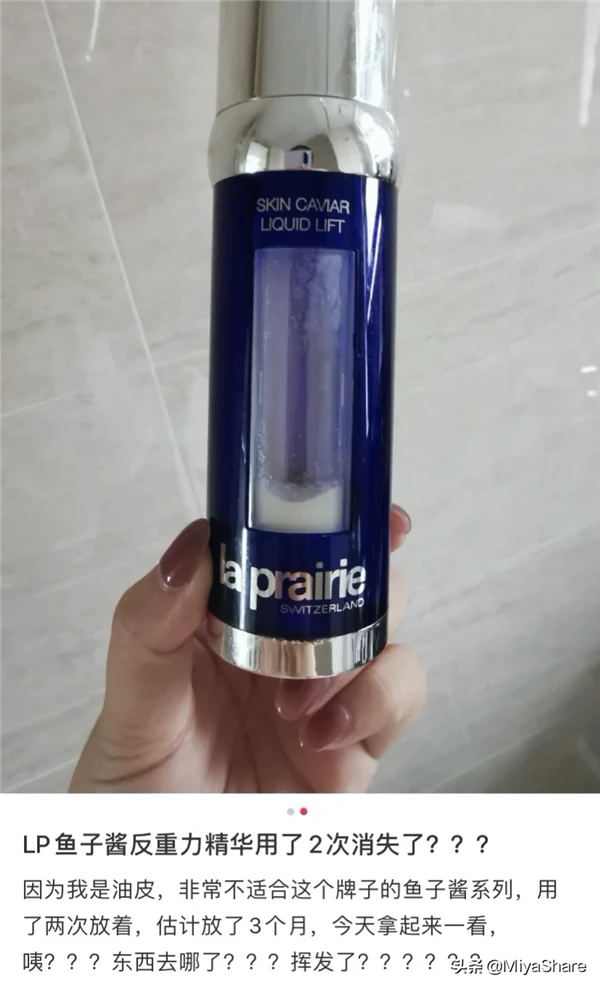 LP的鱼子酱反重力精华也算品牌的明星产品了。关于鱼子酱之前我们就吐槽过,这回再说说产品包装问题。
