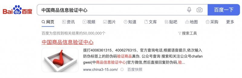 Lamer 扫描防伪码查询真假的办法是超级简单的,首先在百度上搜索“中国商品信息验证中心”,然后进入该网站,找到查询框,输入防伪码,等待查询结果。如果查询不到信息,建议谨慎购买。如图所示: