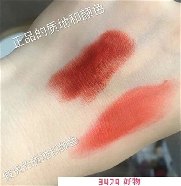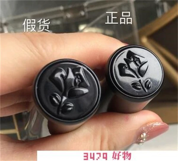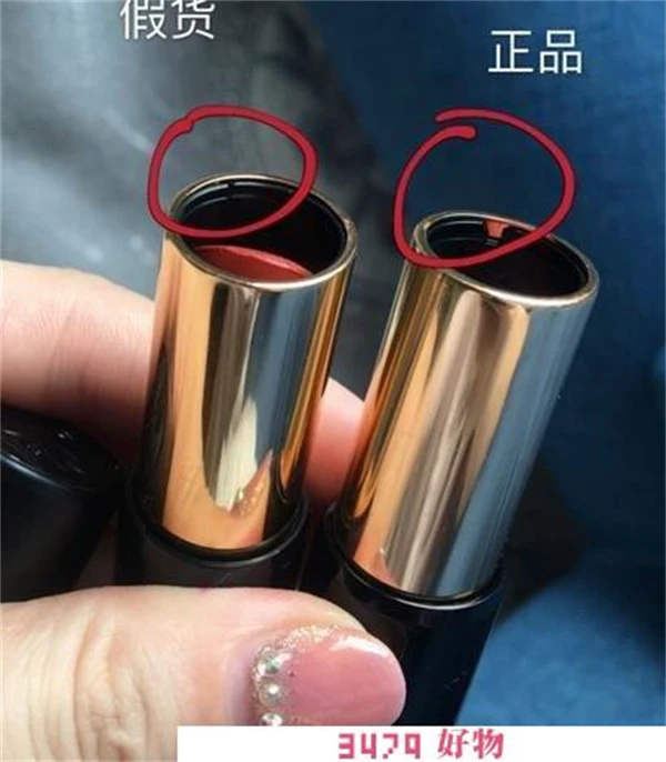 假货底部金色部分要宽一些,正品比较窄。按压口红时,假货需要很大力气,正品容易按压。