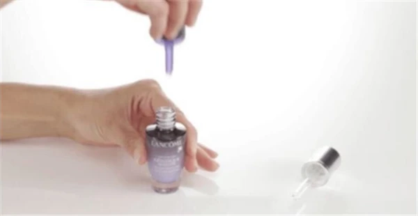 第一步:顺时针推扭黑帽,将蓝色精华液释放到基础精华液中。