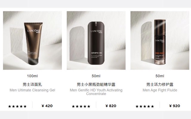 男性可以使用兰蔻系列产品,因为兰蔻也有各种为男性定制的产品。例如,兰蔻男士活力修复乳、兰蔻男士洁面凝胶、兰蔻男士强能精华露等产品。男性护肤并不意味着你使用的护肤品越多越好。最重要的是根据皮肤状况选择护肤品。兰蔻男士护肤系列包括: