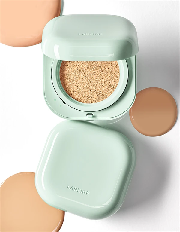 兰芝「绿气垫」适合油皮及混油皮及春夏季使用,*采用特殊垫芯结构、高遮瑕定妆技术Strong Fixer Coverage、微米活彩遮盖技术Vivid Coverage三大技术。可遮盖色斑、痘印等面部瑕疵,帮助隐匿闭口和毛孔。值得一提的是,气垫内部的空气粉扑采用微孔设计,表面微孔于取量与涂抹,将气垫涂抹性提高了约10%,可在面部均匀涂抹。更有防脱妆技术Humid DefenceTM,24小时不脱妆强效防汗,优选成膜配方及微粒吸油粉末,通过成膜剂功能及吸油粉成分调节肌肤水油平衡,打造更轻薄、持久、无暇的雾光肌肤。