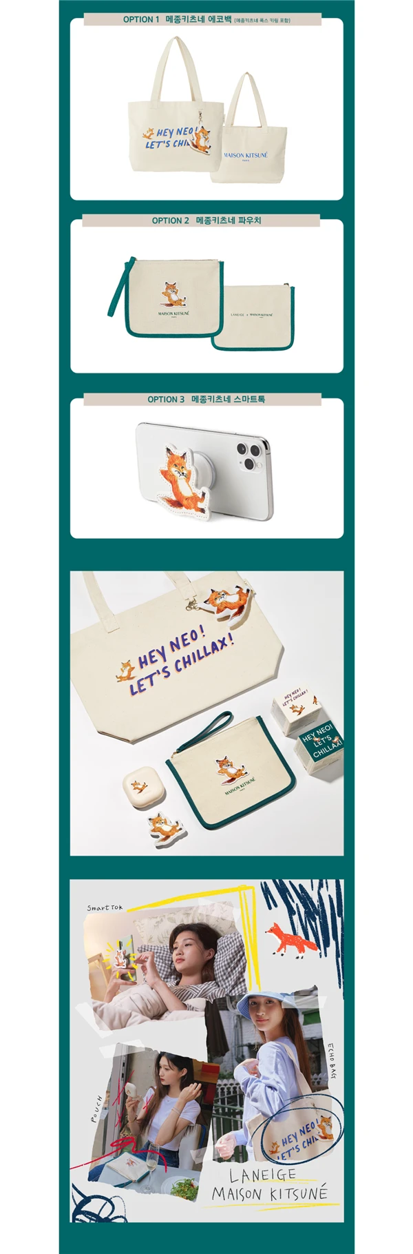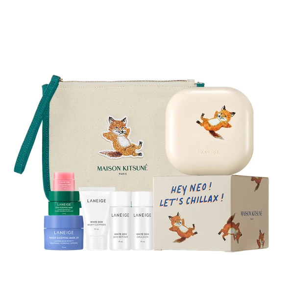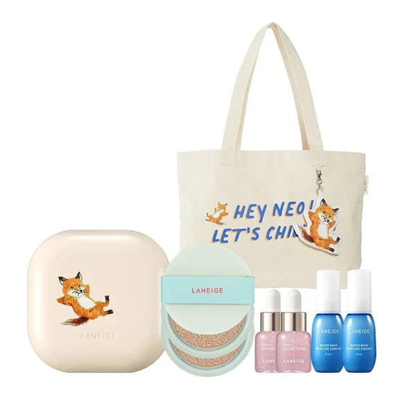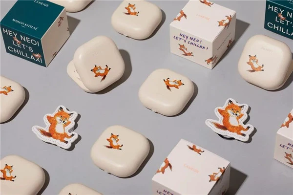 2021,可爱担当小狐狸为兰芝NEO型塑雾感气垫换上崭新秋装,奶油系的外壳上躺着翘着双脚的慵懒小狐狸,除了NEO型塑雾感气垫本身之外,这次的联名周边不仅可爱而且一个比一个实用,无论是大容量托特包、精致刺绣的化妆包或小狐狸手机支架,每个周边上都能见到小狐狸的踪影,绝对是2021最火的一次联名!