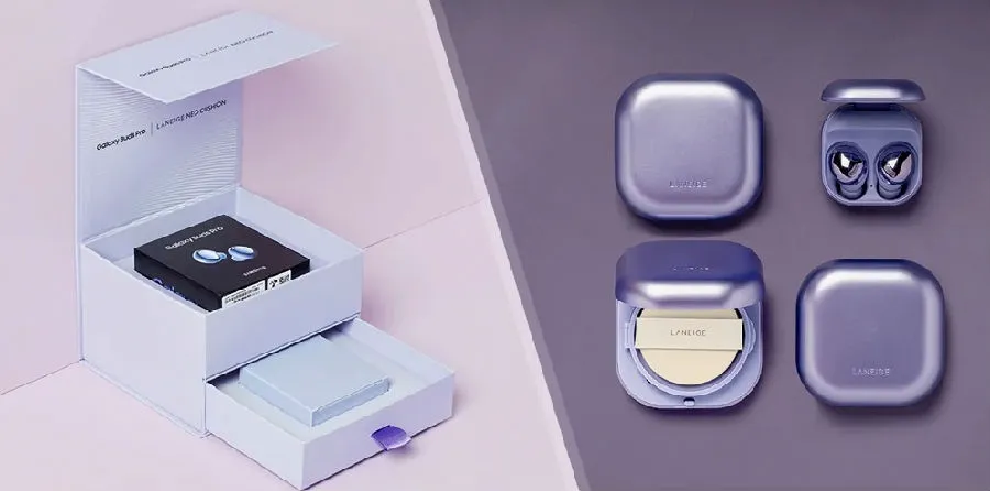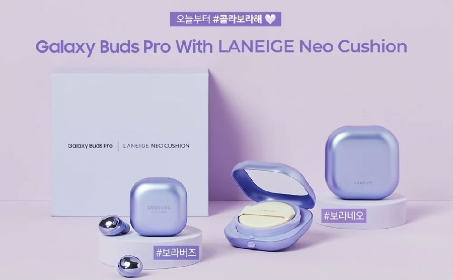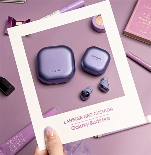兰芝在去年推出史上最激萌小方块气垫粉饼,因外型激似无线蓝牙耳机收纳盒引起广大讨论。而在近期,兰芝宣布与三星携手推出Galaxy Buds Pro联名组。