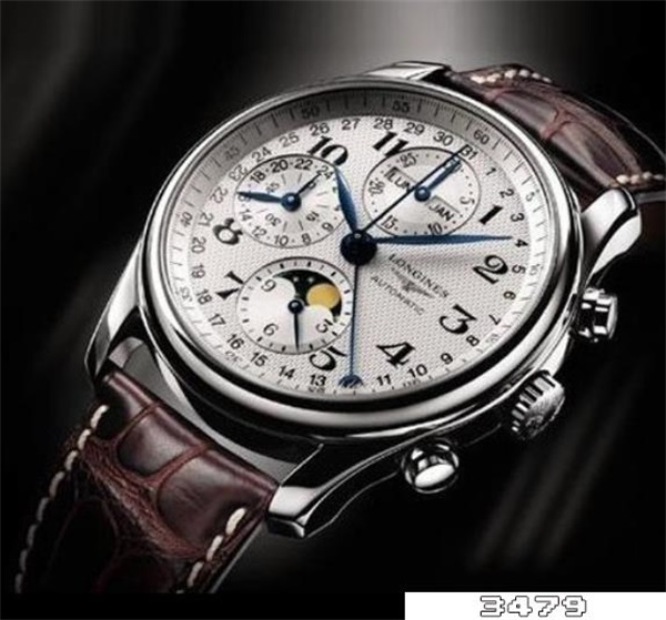 浪琴八针月相是一款多功能计时手表,内含非常复杂的自动机械机芯,在进行日期校对的时候需要格外注意。在调整日期或者调整别的功能之前,先把手表右边中间的表把拉到第二档,同时把时间调整到6点至9点之间,调好后就把中间表把恢复原样。