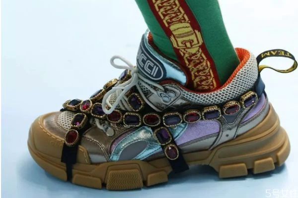 首先就是被权志龙穿到火爆的巴黎世家老爹鞋了,这也是现在知名度最广的老爹鞋款式。老爹鞋是今年非常流行的一种运动鞋的款式,外形看上去很复古,而且增高效果特别好,有很多明星都已经穿了。2017年,从年头火到年尾的无疑是复古运动风的老爹鞋。这些鞋款之所以被称为「DadShoes」是因为他们的外型实在很像老爸会穿的那种鞋子,鞋头圆滑、加厚气垫、超醒目的品牌LOGO,总而言之,就是散发一股「老土味」。但随着复古潮流回归,这些80年代气息的单品也跟着水涨船高,不只不「土」了,反而还成为时尚圈最常着用的单品之一。据说,全面带起这股爸爸鞋流行风潮的,还是我们的潮流风向标侃爷。