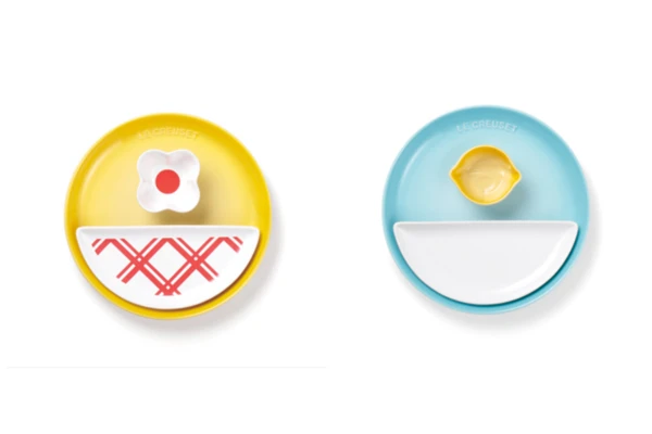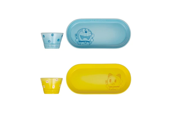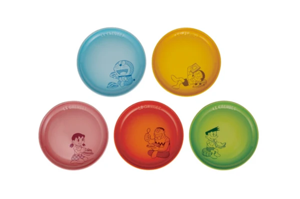 前两个尺寸以哆啦A 梦的配色打造,不只是从颜色上呼应,还有尾巴的图样印在锅身。除此之外,还有两组造型瓷盘,碟盘的外型也让人眼前一亮。