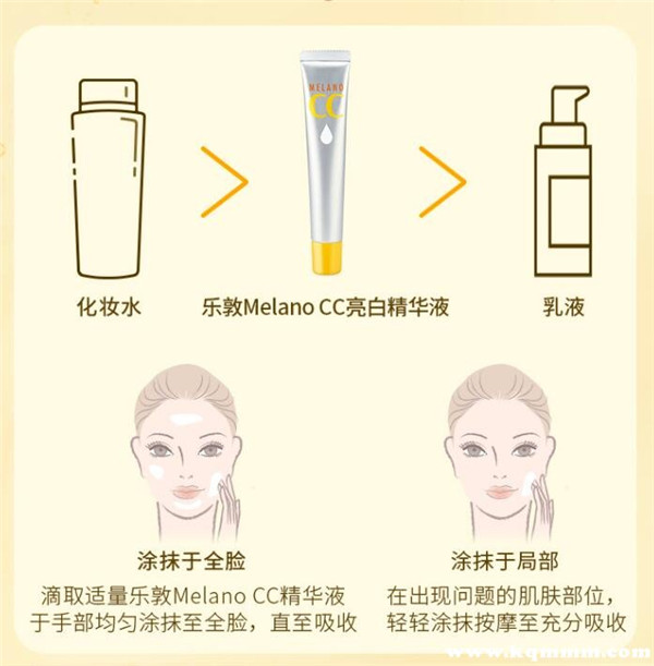 用完化妆水后,挤出几滴乐敦cc的精华,涂抹全脸,稍微按摩一下促进吸收,在用一些乳液保湿即可。
