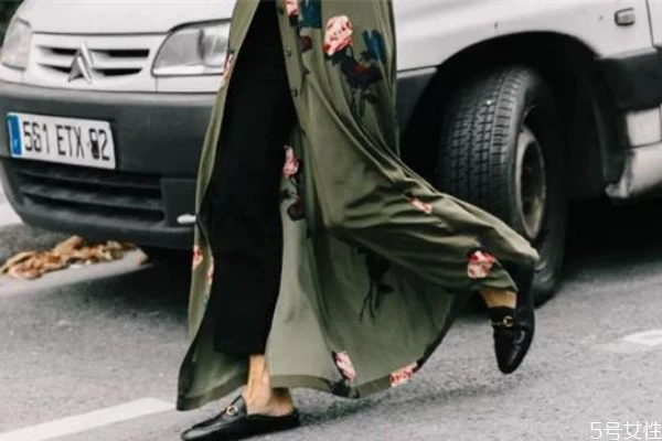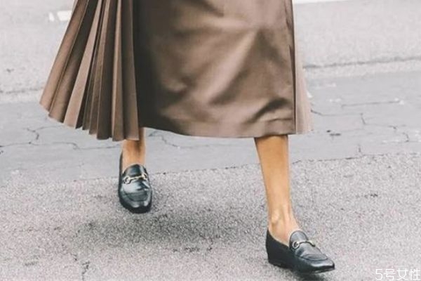 首先是比较好穿的长裙,这种直接到脚部的裙子在换季的时候很时候,温柔的长裙加上乐福鞋,其实是很好的搭配。还有一点小浪漫的感觉,在秋天的街头是很有魅力的,鞋子的颜色可以根据自己的裙子来选。