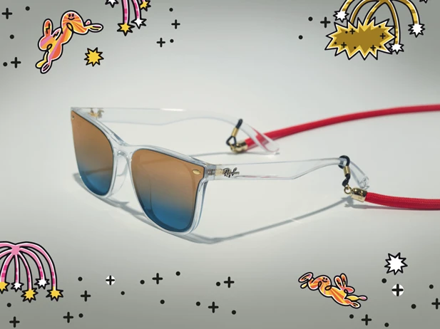 雷朋兔年艺术家合作款光学镜,在经典之中注入时尚风格。这款光学镜拥有超大透明材质镜框,让人时刻散发青春活力,搭配金色细节的镜架坚韧有型,镜脚处的兔子图案与红色镜链是呼应了新年时节喜庆热闹的氛围,为潮流爱好者激发灵感与活力。