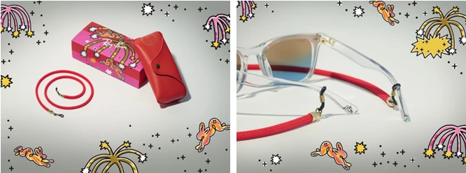 合作款的镜脚处印有MORECREW创作的“烟花兔”图案,延续了艺术家一贯的创作风格,以一根线画出完整的一只兔子,代表了生生不息、不断延续的理念。烟花造型的涂鸦花纹合作款眼镜盒也由MORECREW特别设计,兔子与烟花一起从喧闹中跃出,它机敏、迅捷、引领时尚,身体里的色块定格了烟花绽放时美好的瞬间,让烟花永恒停留在繁星点点的状态下,和夜空中的星星成为默契的组合,闪耀天空,寄托对未来的美好期许,个性十足的线条和配色体现了潮流与传统文化的碰撞。雷朋邀请潮流爱好者以活力姿态大胆释放潮流态度,勇敢向前,在新的一年里活出自己的夺目色彩。