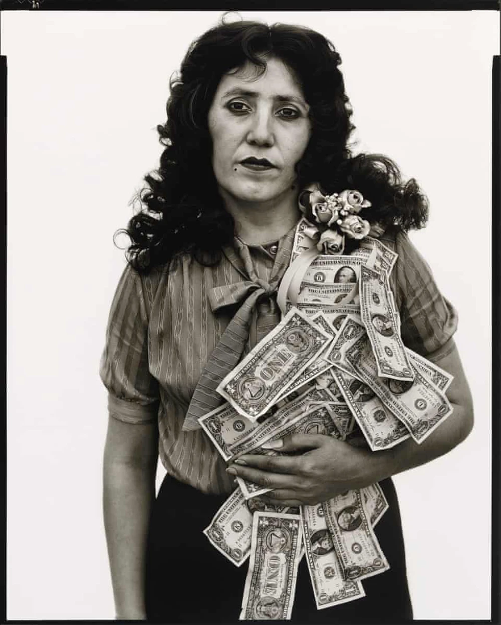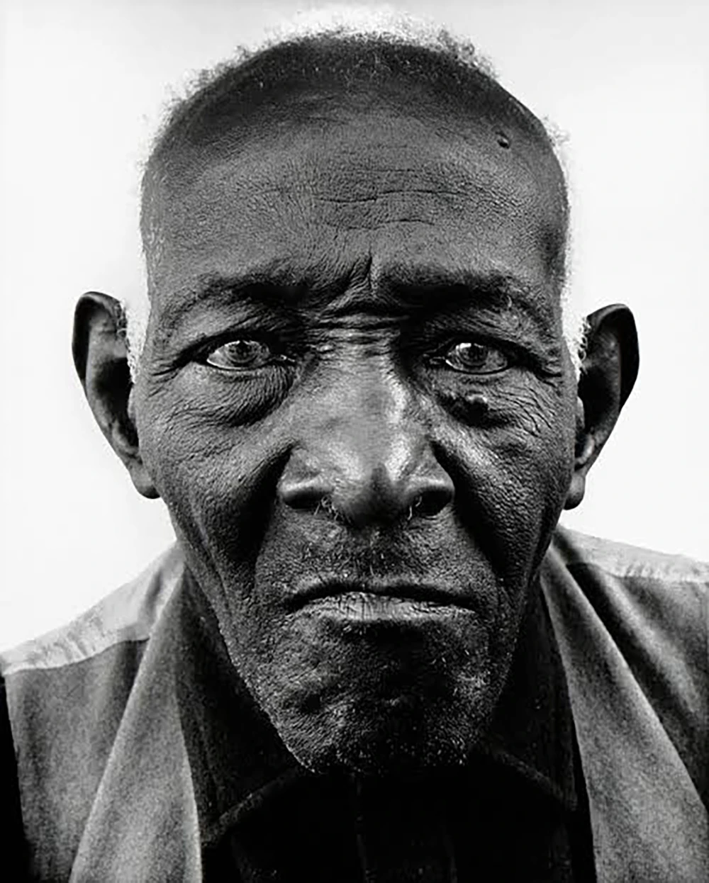 或许是因为曾在商船队为船员拍摄证件照的关系,阿维顿对“证件照式”的人像摄影情有独钟——单色背景,人物居中,正面直视镜头,面部表情突出,穿着打扮随意。他也不会像照相馆那样,在灯光和构图上美化顾客,而是尽量拍出人物的真实状态。