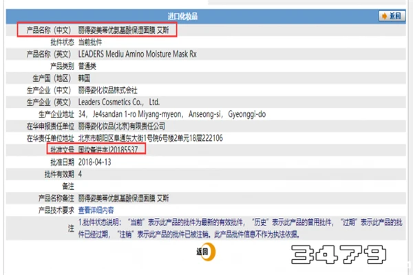 这款面膜有在国家药品监督管理局备案,并不是三无产品,相对比较正规。其批准文号是“国妆备进字J20185537”。其备案详细如图所示: